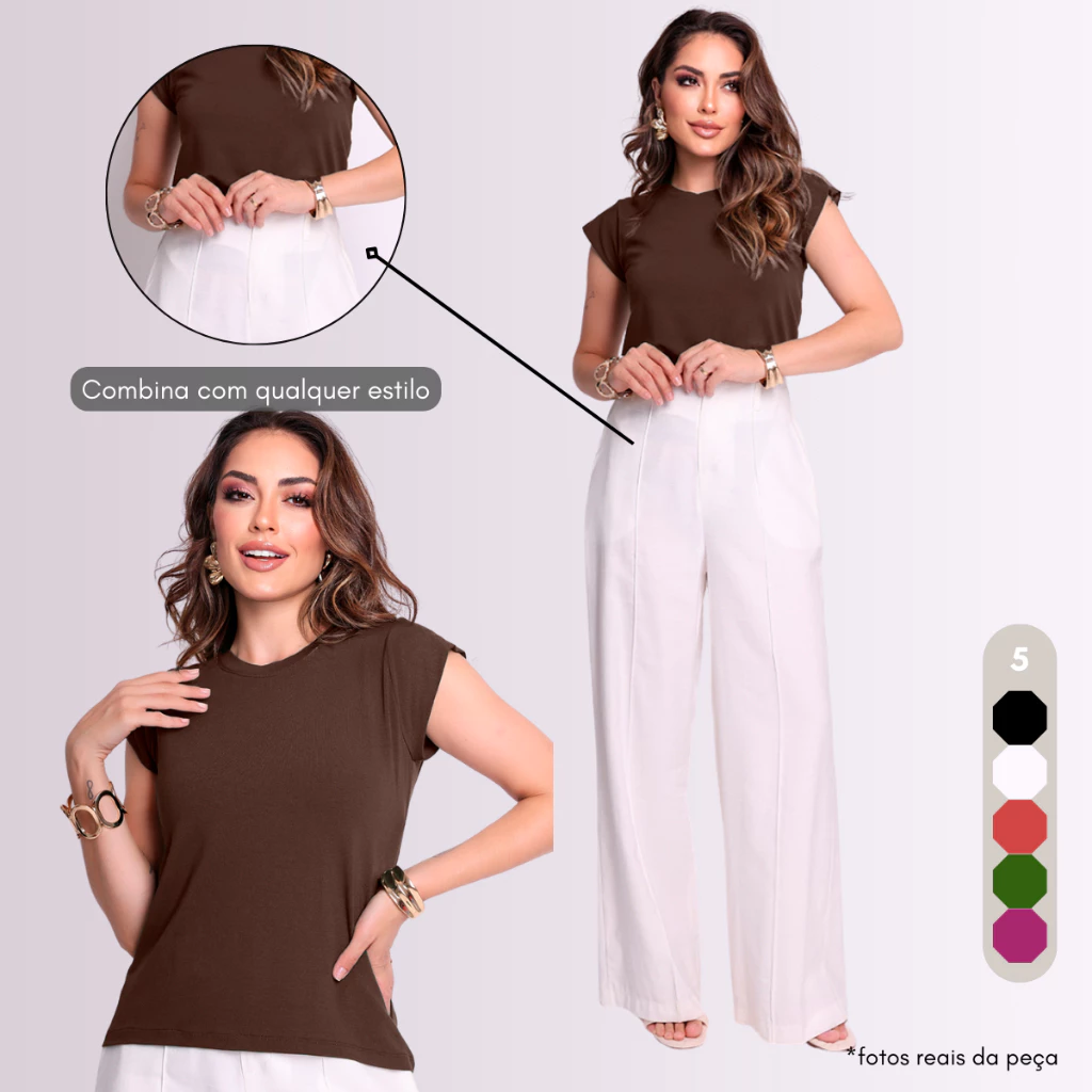 Kit 2 Blusas Femininas Básicas Muscle Tee Camiseta Moda Elegante